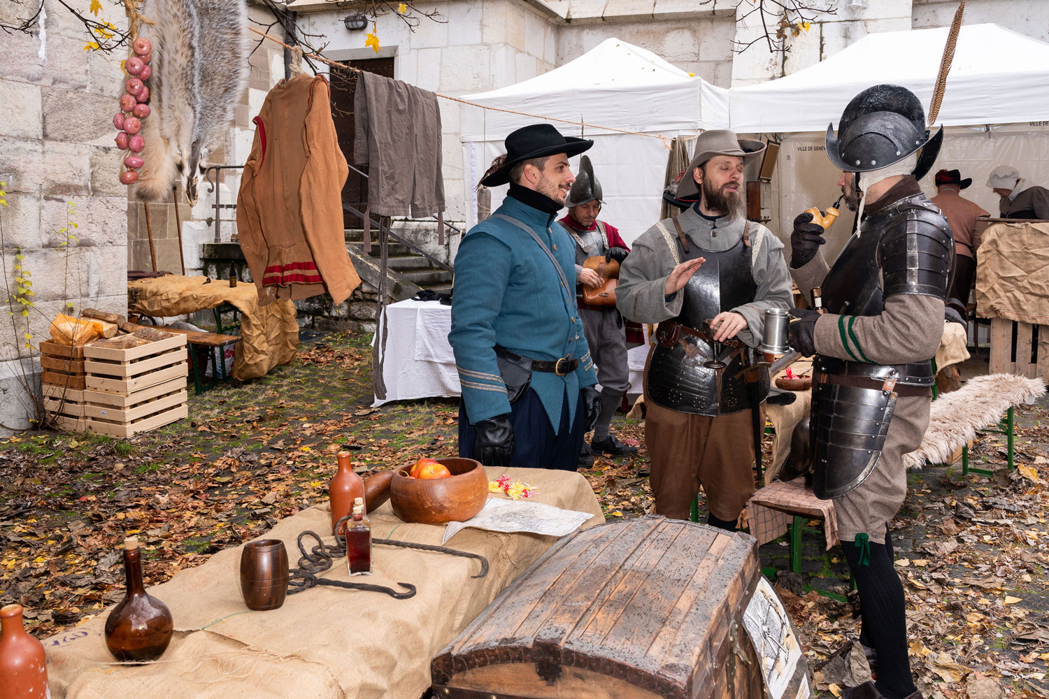 La Compagnie de 1602 anime les rues de la vieille ville de Genève. Des groupes de fifres, tambours et cuivres, d’arquebusiers, des piquiers et des patrouilles de la cavalerie ou encore notre canon “Falco”, paradent, défilent et présentent la vie au XVIIe siècle.