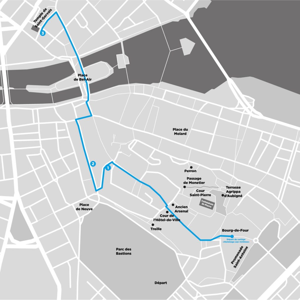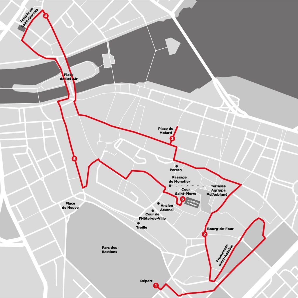 Promenade de la Treille : 14h00 / Bourg-de-Four : 15h00, 15h30